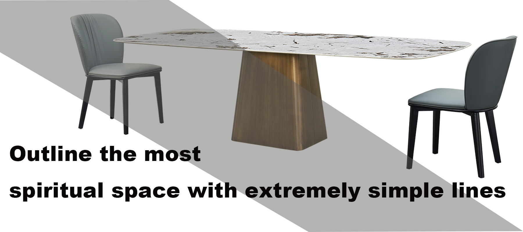 1. Base Design: The dining table showcases an innovative and visually striking irregular base design.1. Thoughtful Proportions: The dining table is designed with thoughtful proportions that strike a balance between functionality and visual appeal. The dimensions of the table are carefully considered to provide ample space for comfortable dining while maintaining a sleek and proportionate look. This attention to detail ensures that the table harmonizes well with the surrounding furniture and the overall dining area.