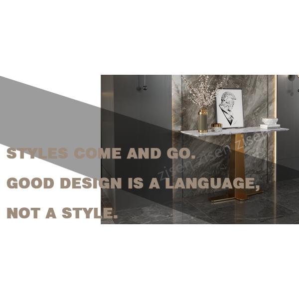 1. Ceramic Marble Tabletop: The console table features a high-quality ceramic marble tabletop that adds a touch of luxury and refinement. The ceramic marble has a smooth and polished surface, showcasing the natural veining and color variations that make each piece unique. The durability of ceramic ensures that the tabletop will withstand daily use while maintaining its beauty.